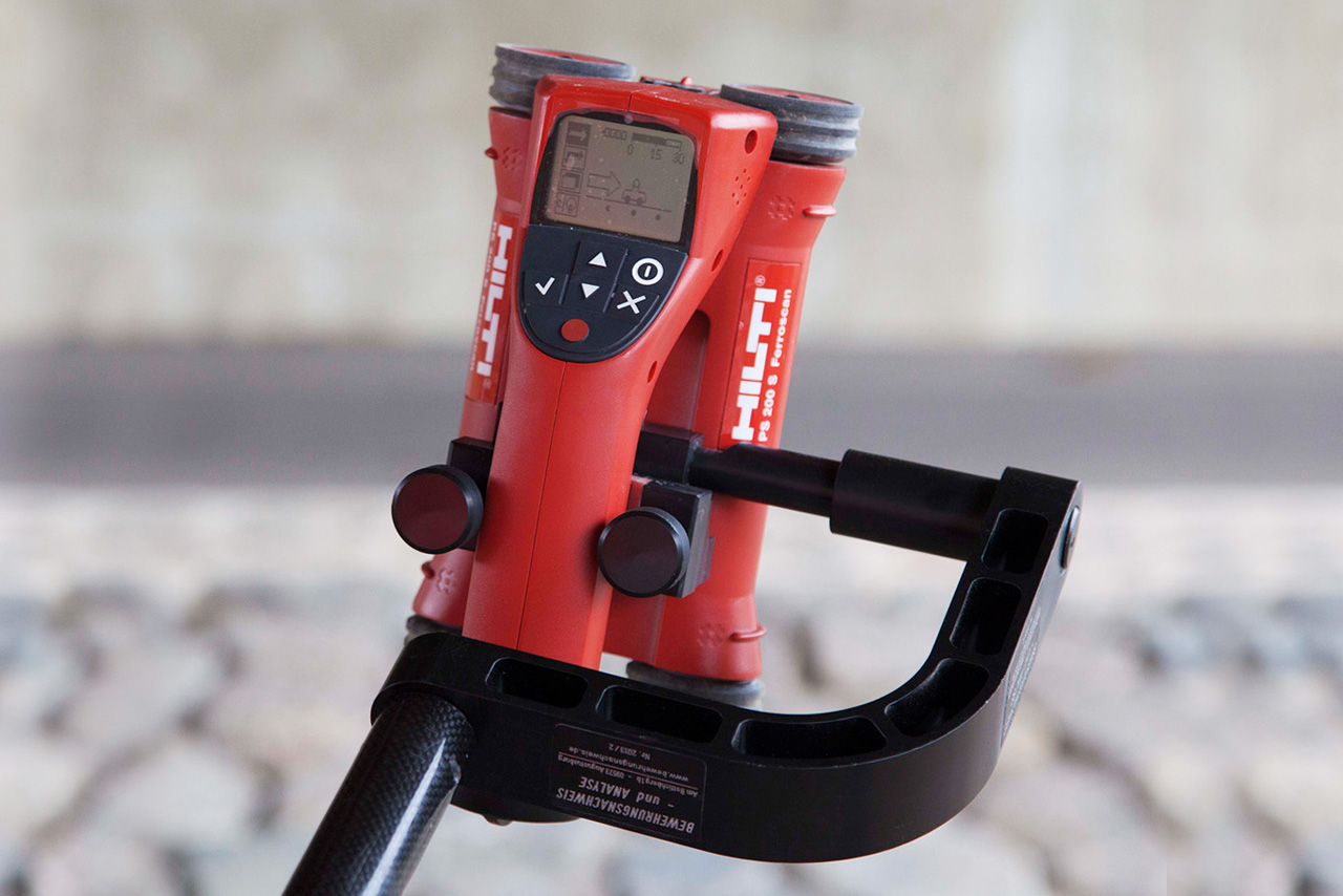 Jetzt neu: die Multiscanner Scannerverlängerung für Hilti Ferroscan PS 200 für gleich 3 Geräte! Scannen Sie bis zu 3 x schneller, bis 5,50 Meter Arbeitslänge! Drei Messbahnen in nur einem Arbeitsgang abfahren, alle 3 Scanner über eine innovative Fernbedienung steuern und Messdaten ohne Demontage des Scanners auslesen. Ideal für die Sanierung von Parkdecks, Bodenplatten und großen Flächen.